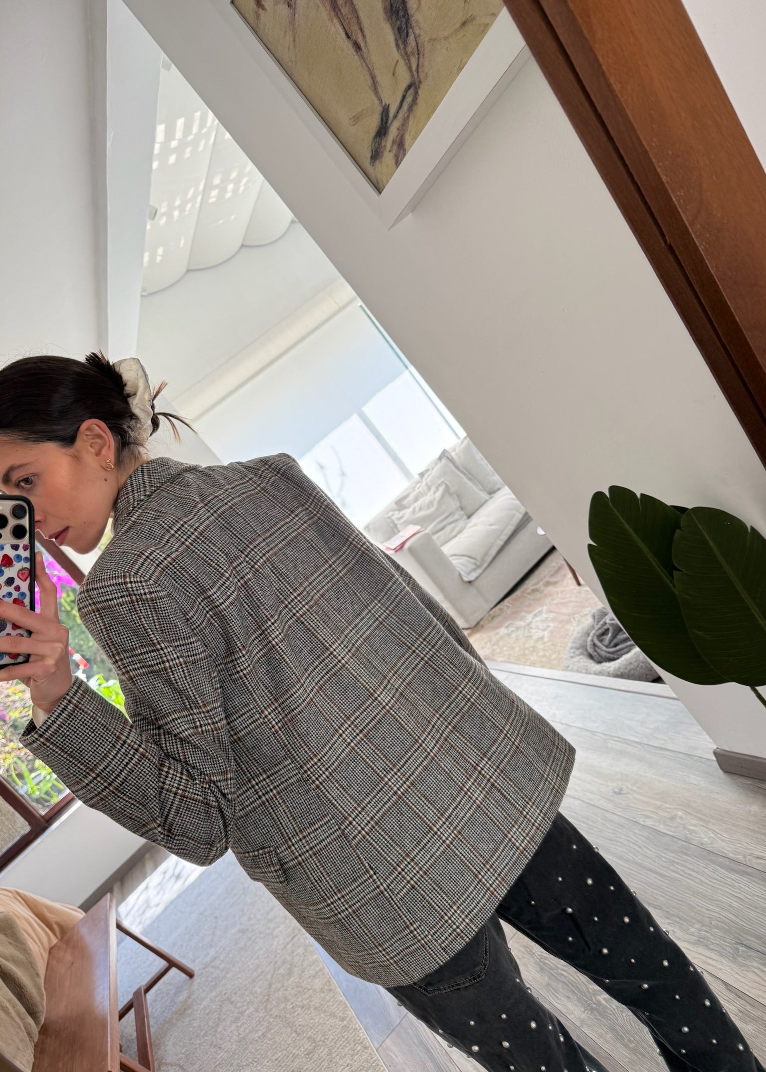 BLAZER PRINT CUADROS NEGRO Y CAFE