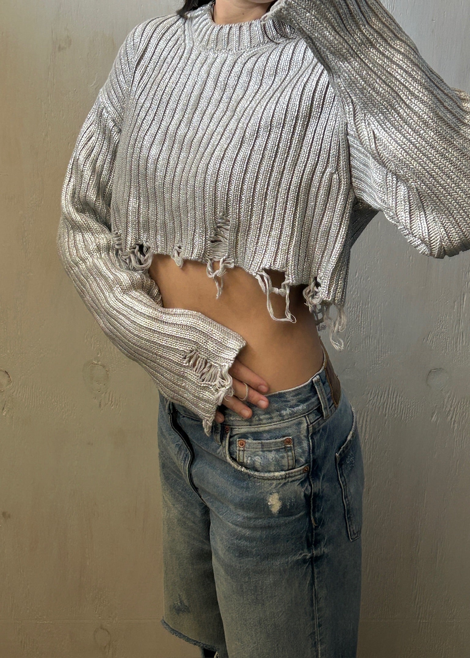 SUÉTER PLATEADO RIPPED